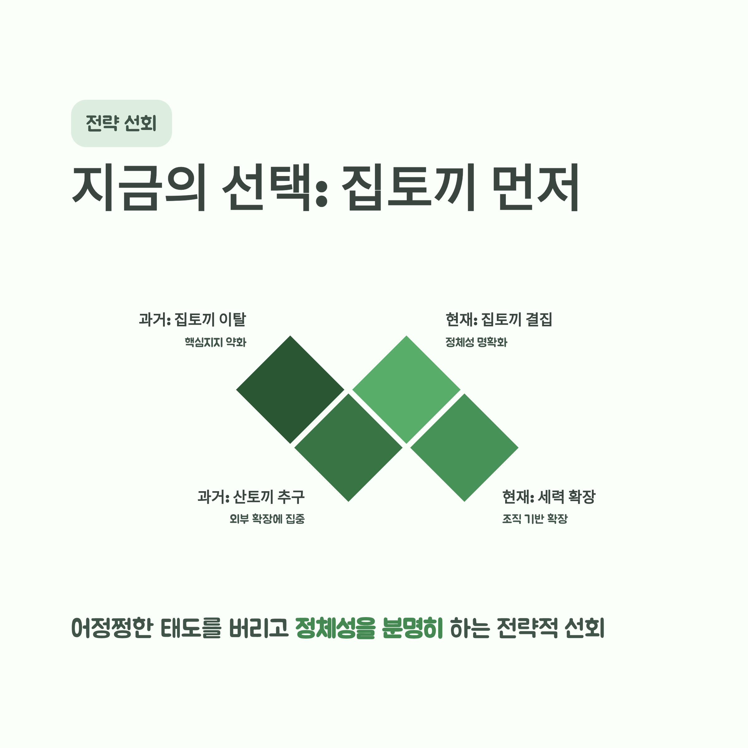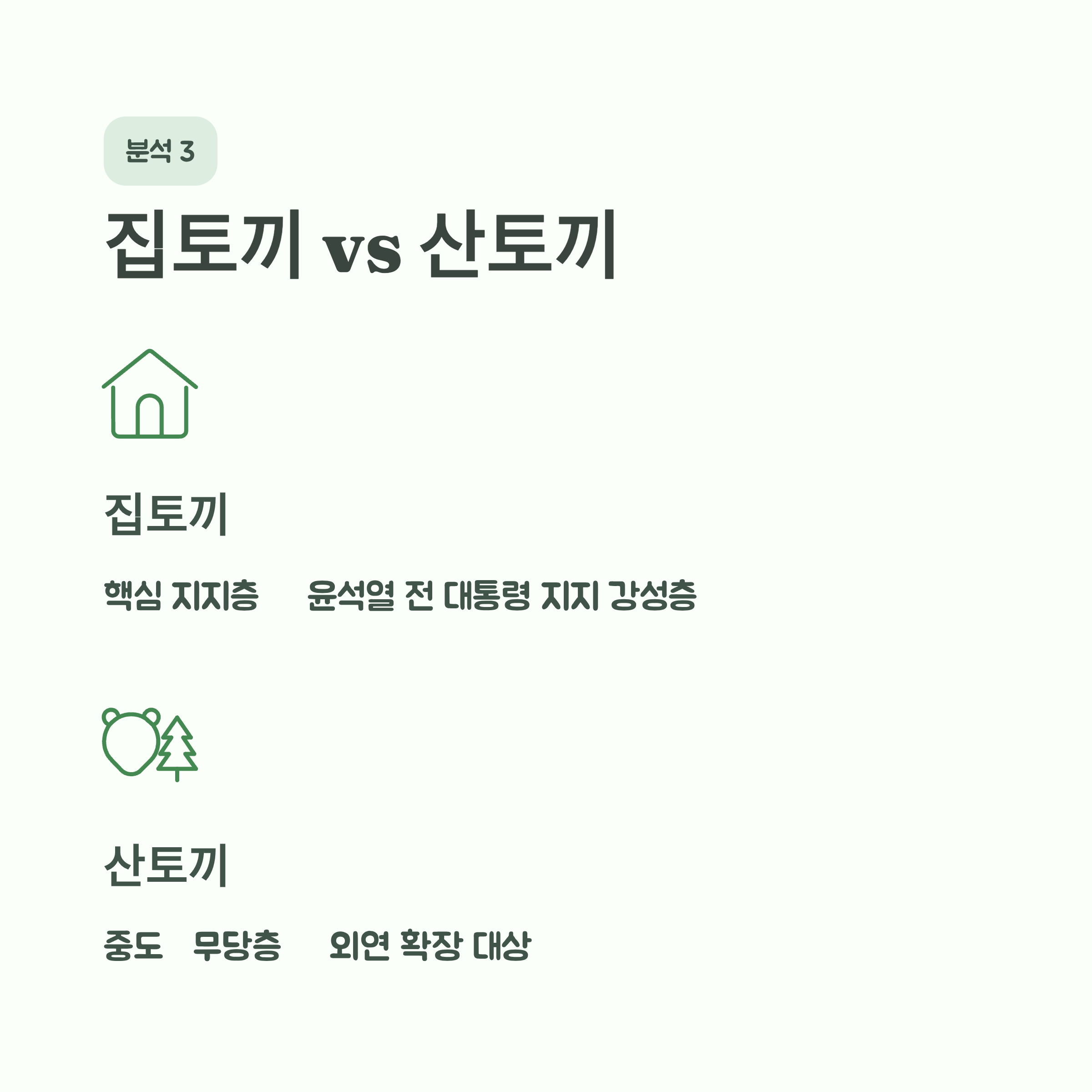이러한 변화는 과거 '산토끼'를 좇다 '집토끼'를 놓쳤다는 반성에서 비롯된, 핵심 지지층 결집 전략으로 분석됩니다.