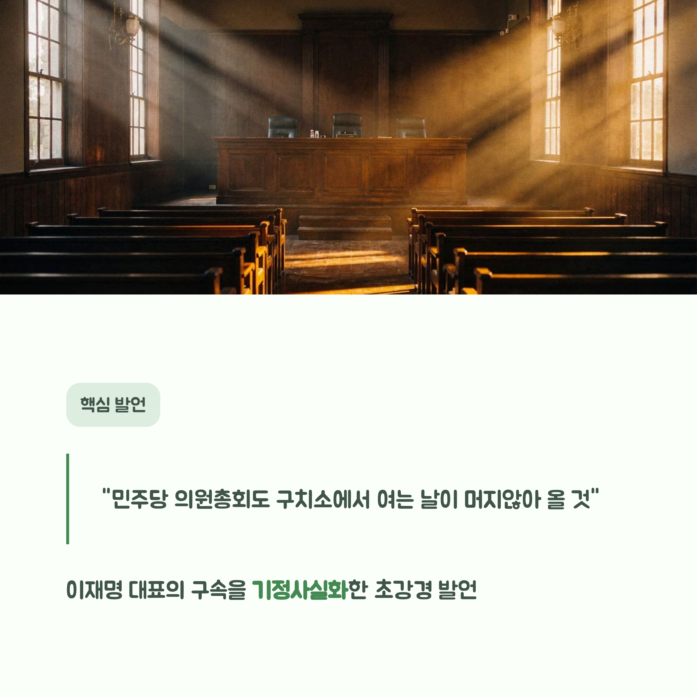 그는 이재명 대표를 겨냥한 '구치소 의총' 발언으로 사법 처리에 대한 확신을 드러냈습니다.