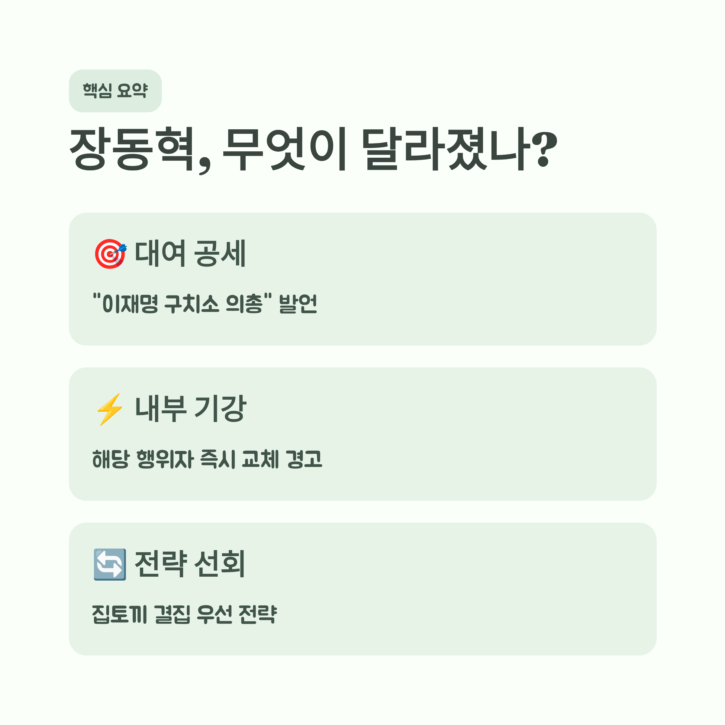 핵심 요약: 장동혁의 작심 발언과 향후 전략