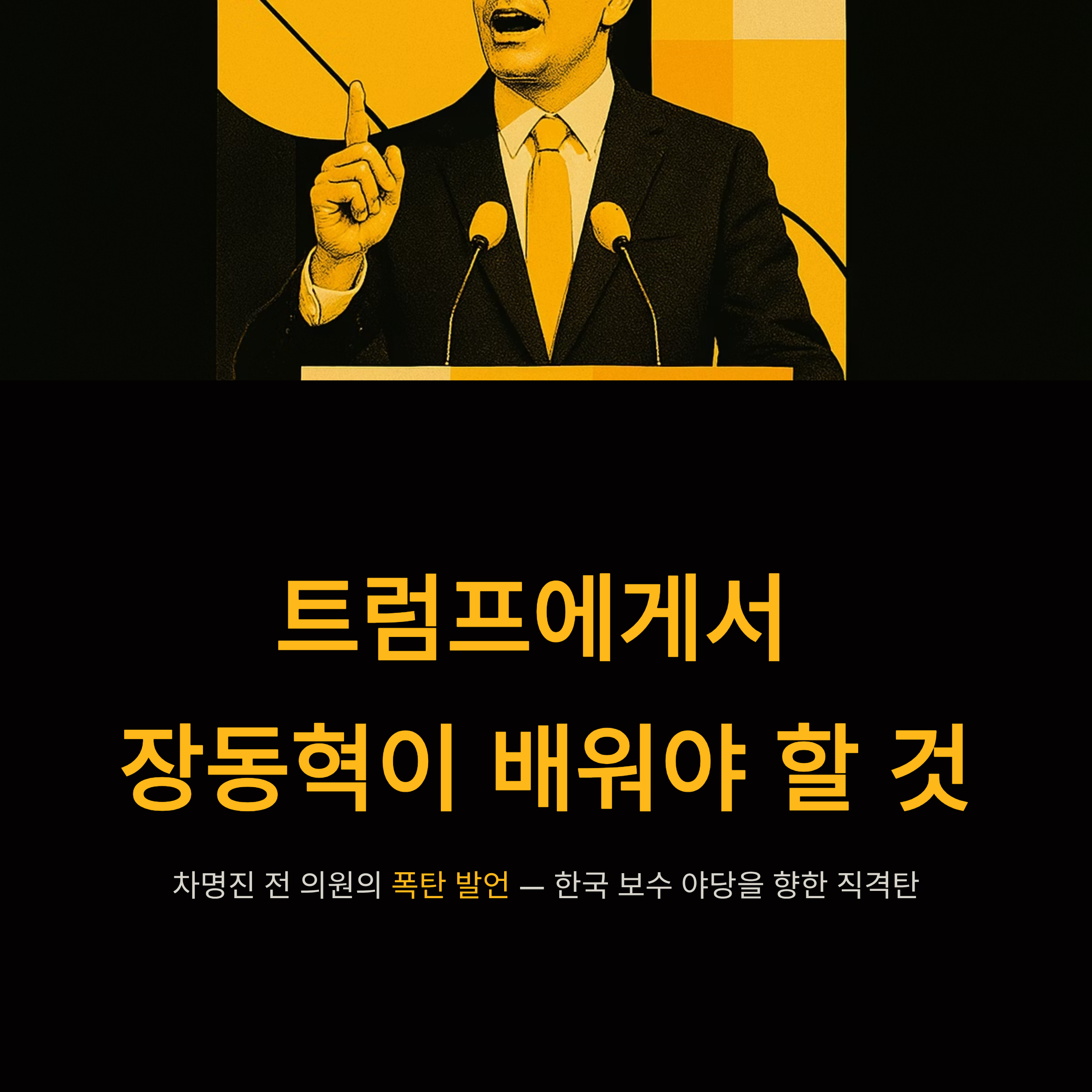차명진 전 의원은 트럼프 리더십을 한국 보수 야당이 배워야 할 모델로 제시하며 그의 원칙과 결단력을 높이 평가합니다.